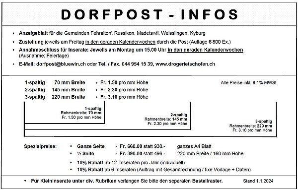 Anzeigenblatt für die Gemeinden Fehraltorf - Russikon - Weisslingen.